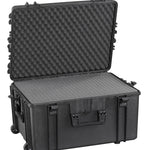 wasser- und staubdichter Trolley-Koffer mit ausziehbarem Griff in schwarz, inkl. Schaumstoffeinlagen mit Würfelstanzung zur individuellen Anpassung und 2 stabilen Leichtlaufrollen Innenmaß: 620 x 460 x 340mm Aussenmaß: 687 x 528...